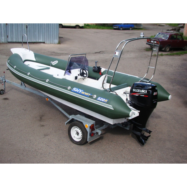 SkyBoat 520R - самая крупная лодка в модельном ряду производителя. Она вместительная (8-метсная), безопасная (баллон состоит из 5 камер) и маневренная. Лодка rib SkyBoat подходит для отдыха на море, для рыбалки, патрулирования, спасательных операций и т.п. SkyBoat 520 - единственный риб с такими габаритами, способный под 2-тактным мотором 40 л.с. развивать ту же скорость, что аналогичные лодки под более мощными моторами. Rib SkyBoat 520 комплектуется рулевой консолью, стационарными банками, стеклом, носовой площадкой, рымом, швартовочной уткой, площадкой газ/реверс.